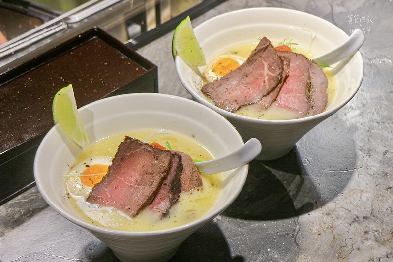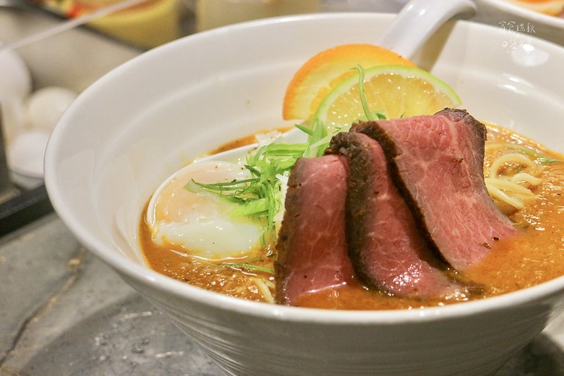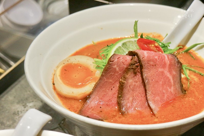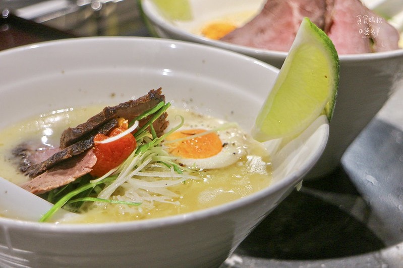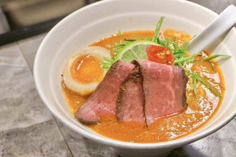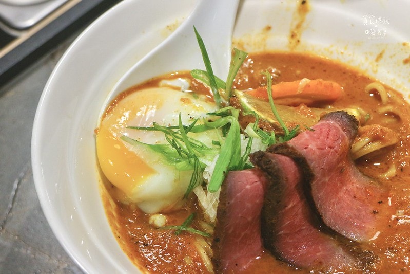 在原有的牛骨白湯加入咖哩調味,比起白湯會更濃郁,甚至有點到沾麵的濃稠度,但不會過鹹過膩,一入口是咖哩的鮮明香氣,之後才細品到獨特的香料味~這碗比白湯更適合加點白飯拌入!醬汁真的太厲害了