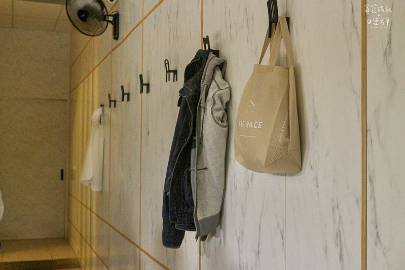 店內僅有L型吧台桌,裝潢蠻有質感的!座位後方都有可以掛包包和外套的掛鉤,最貼心的是還有不織布圍兜!穿淺色衣服也能安心吃!