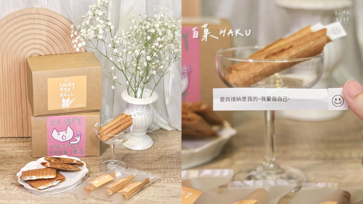大家有吃過幸運餅乾嗎?外國電影裡中式餐館會賣的幸運餅乾~打開餅乾有籤詩,有時可以給迷茫的你一些方向~而這家「白菓HAKU」推出的幸運蛋捲,裡頭的籤詩可以客製化成自己想寫上的話,不管是送禮給朋友或是當作告白禮物都很適合!讓禮物更有意義~棉花糖脆餅也是讓人愛不釋手~高品質食材,吃起來餅脆餡甜,可口到一片…
