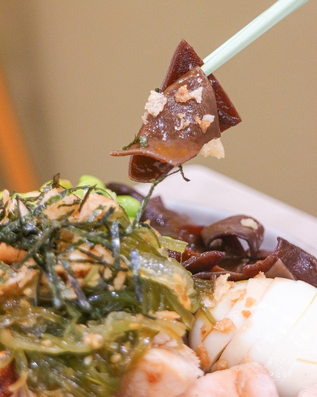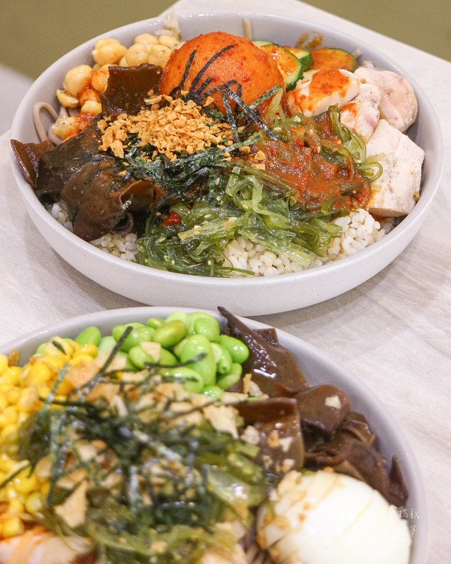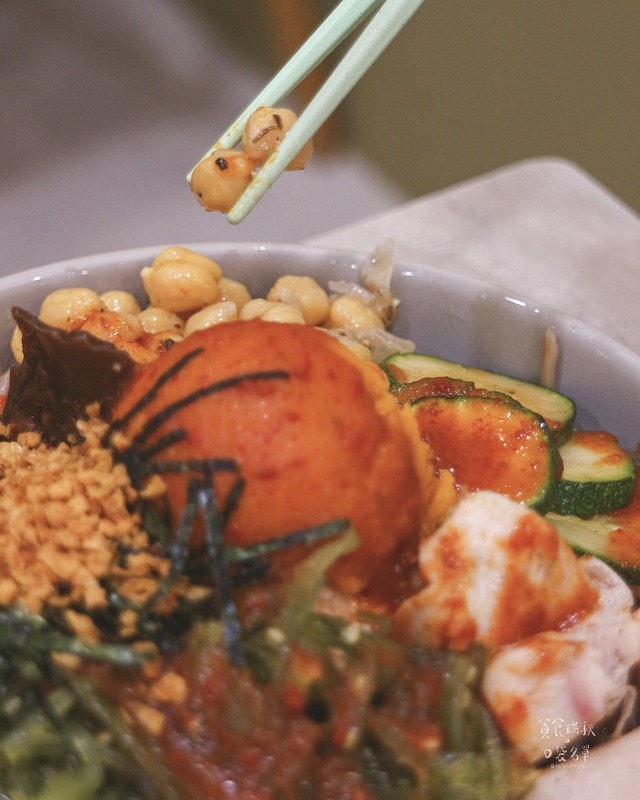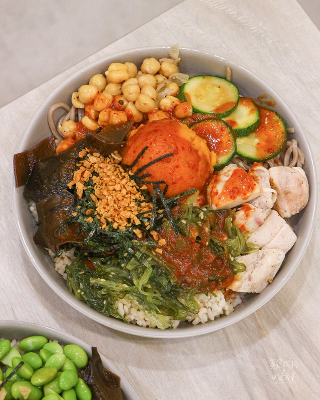 會因為季節變化改變菜色,但我後來幾乎都是點這個配置:鷹嘴豆、海藻、醋香木耳、毛豆、芭樂