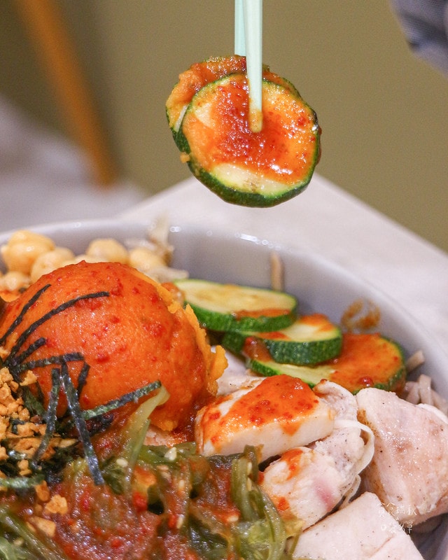 基底99元含主食+5樣配菜+醬汁+點綴+脆脆,蛋白質是另外計價,其他主食、配料也有額外加價的選項!等於最便宜不加購蛋白質只要99元就有豐富的健康餐!不過我是肉食控,都一定要加肉的XD