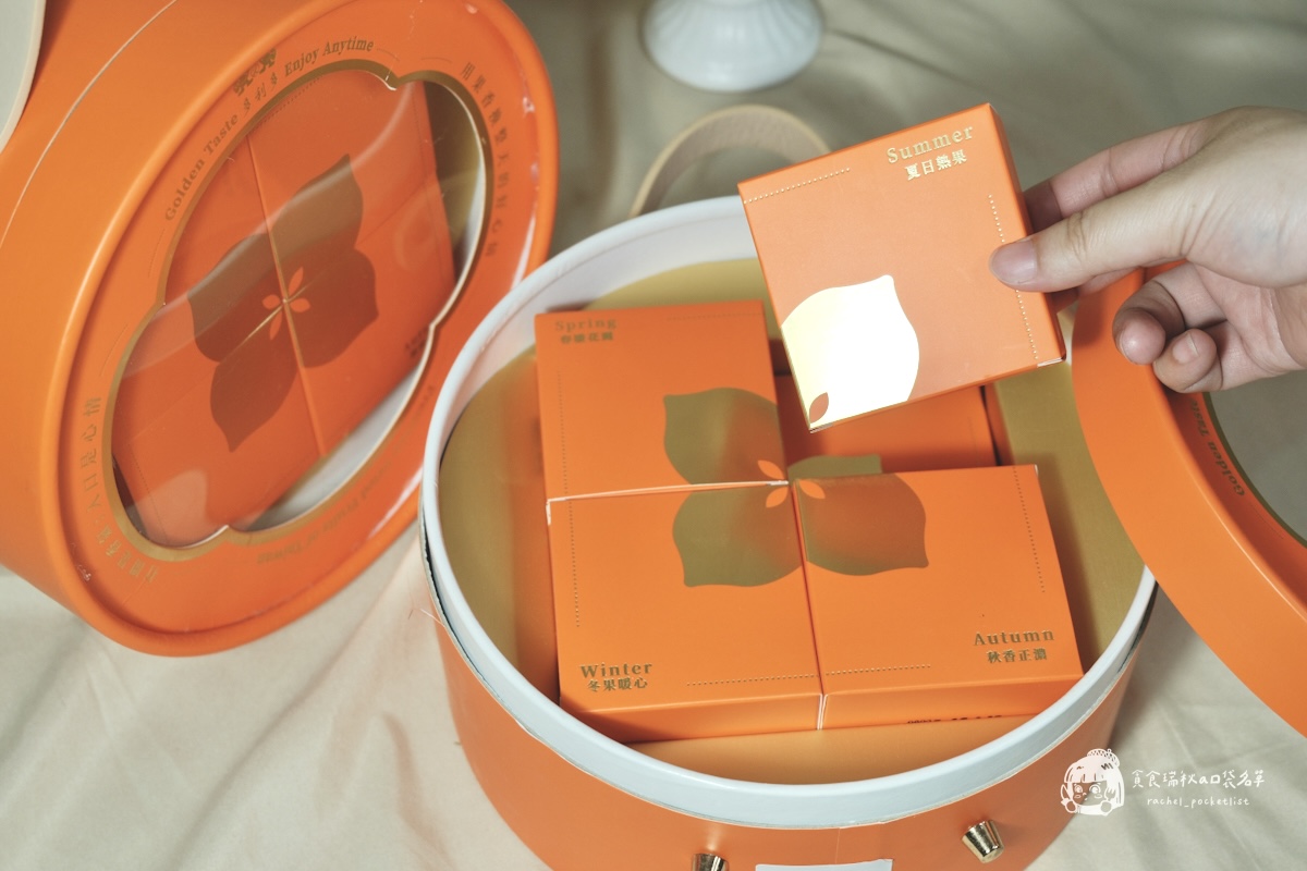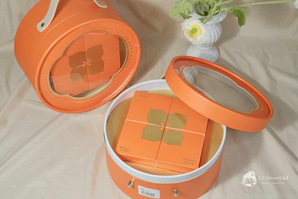 典雅設計大有巧思,圓盒象徵「團圓、圓滿」,除了皮革提把提升質感以外,還可站立!