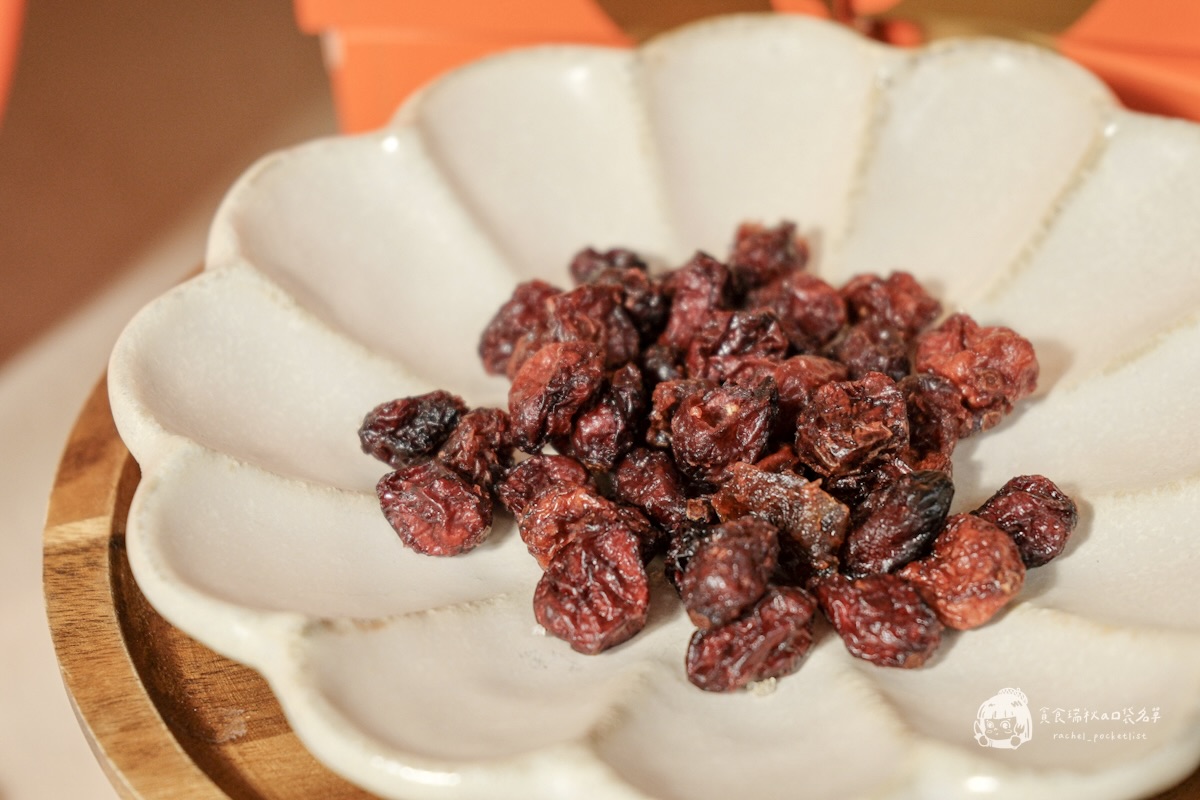 帶有自然果酸,酸酸甜甜~因為是低溫烘焙,能保留較多水分,口感較柔軟多汁~