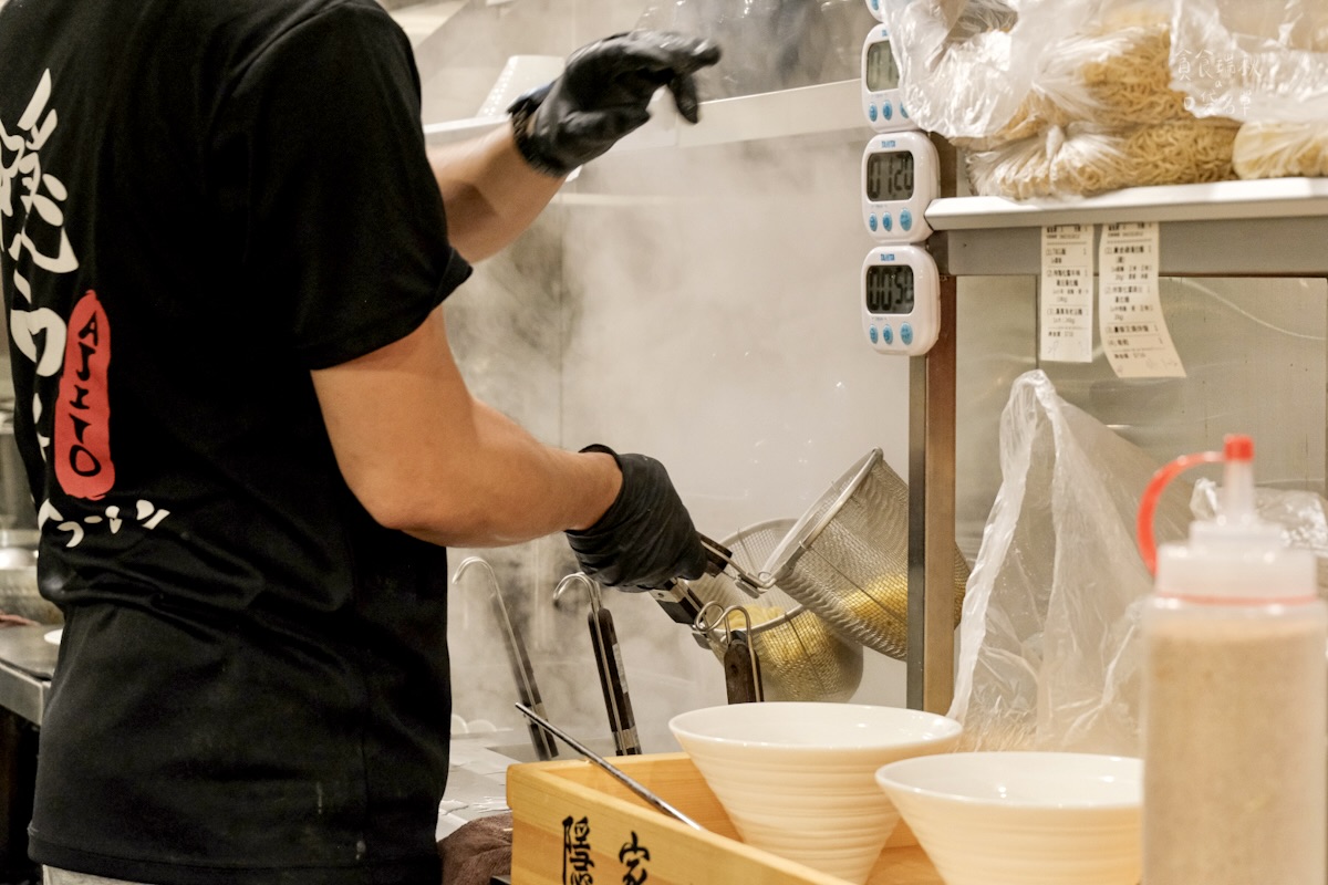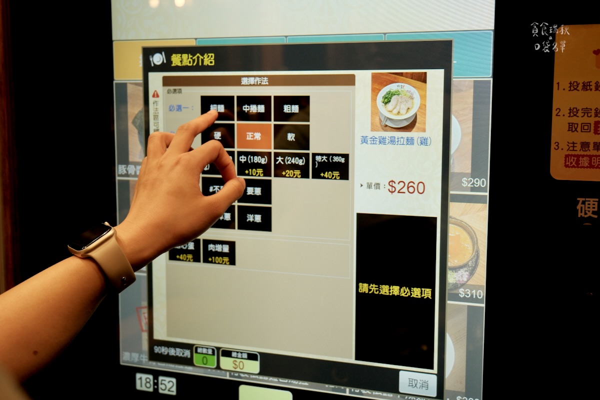 點餐用自助點餐機~可以選麵條、軟硬度、麵加大、有無加蔥和洋蔥、還可以肉增量以及加購溏心蛋,重點是⋯竟然可以line pay!