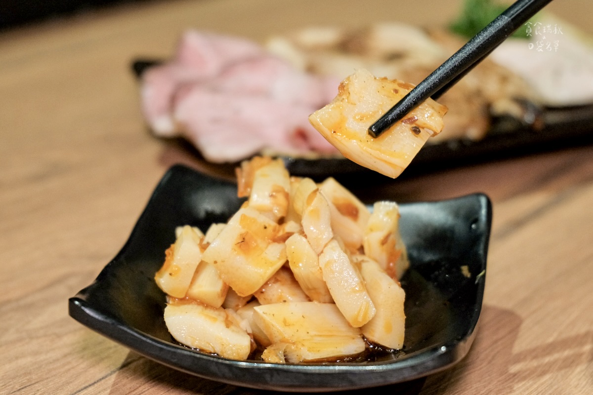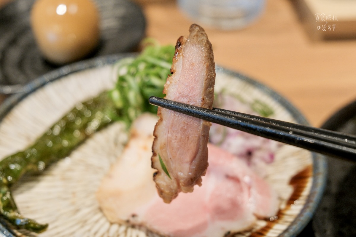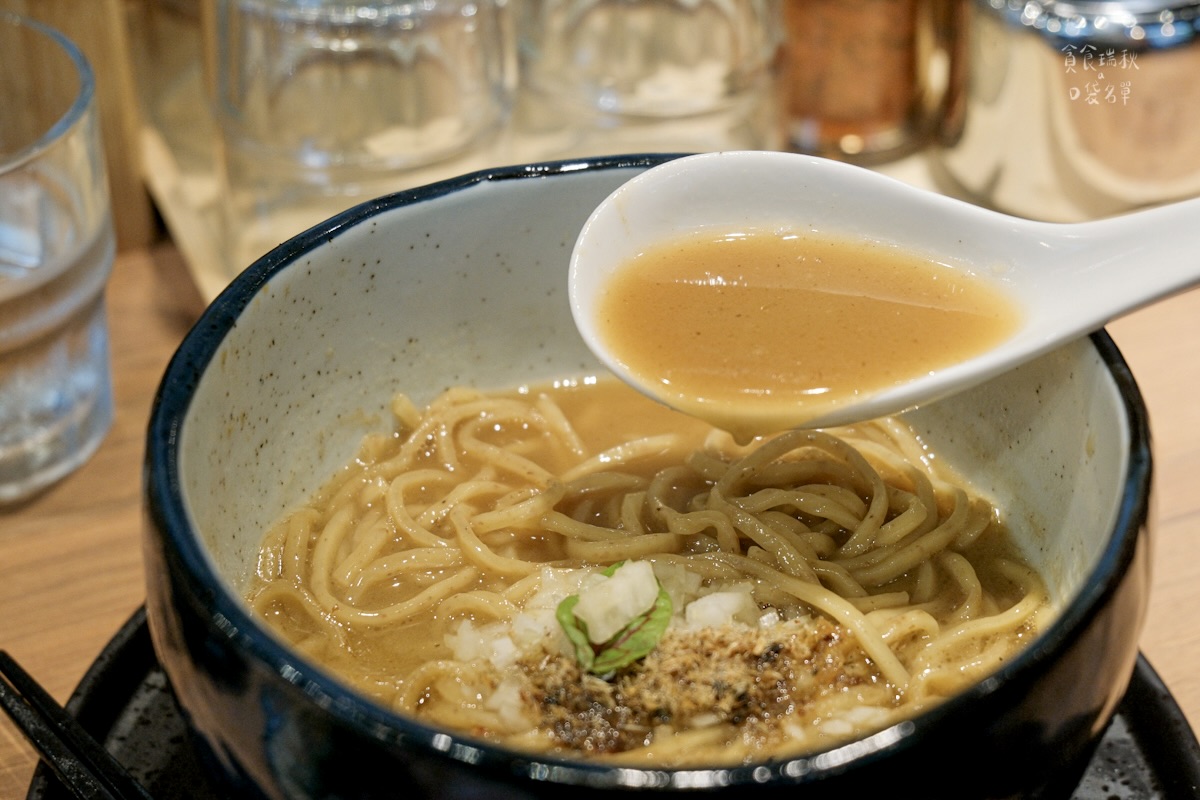 湯頭應該是這次品嚐的三碗最濃的一碗,快要有點沾麵的濃度,有別於一般的煮干湯頭吃到後來會很膩,吃到後來越能釋放出飛魚乾的鮮味,若吃到後來覺得偏鹹,也可以跟店員要清湯~慢慢加入也比較好入口~