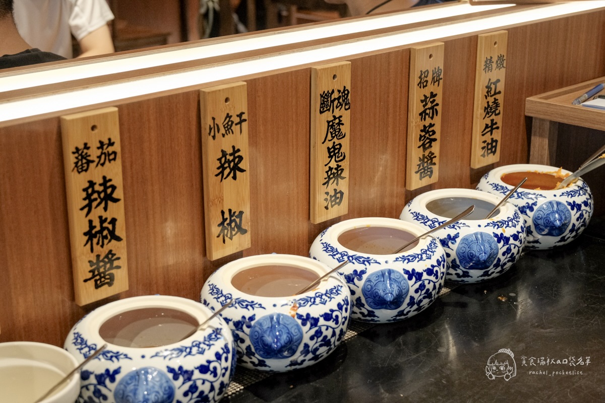 沾醬區很豐富耶!有牛油、各種辣椒醬與辣油,也有牛肉麵不可或缺的酸菜