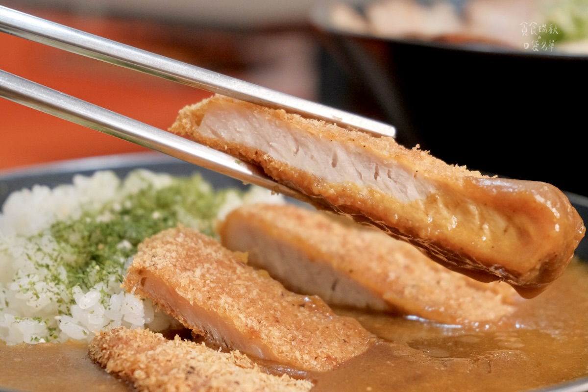 咖哩飯的亮點絕對是那塊厚切豬排!外皮炸得金黃酥脆,一口咬下還能聽到咔滋聲,裡頭的肉質依舊保有鮮嫩!而且超厚超滿足!