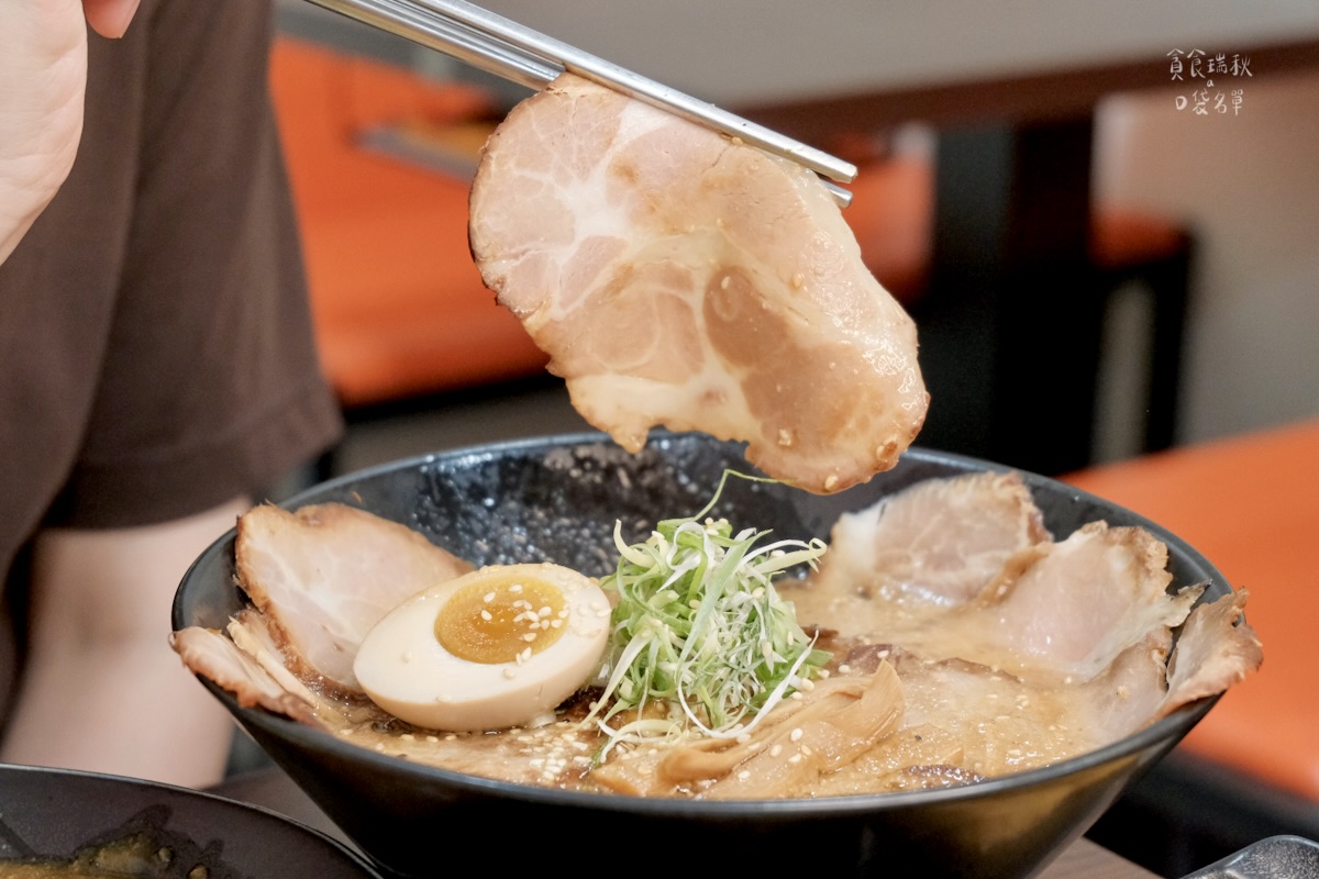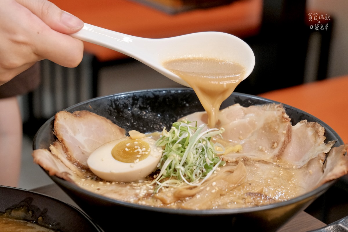 叉燒切得大片,肥瘦比例剛好,和蒜香濃湯搭配得天衣無縫,而且叉燒增量直接是撲滿整個碗!看起來超澎湃