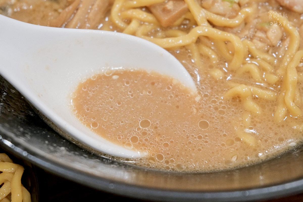 濃厚的黑白湯帶著深褐色澤,入口是厚實的膠質感與滿滿蒜香,喝起來醇厚卻不死鹹!