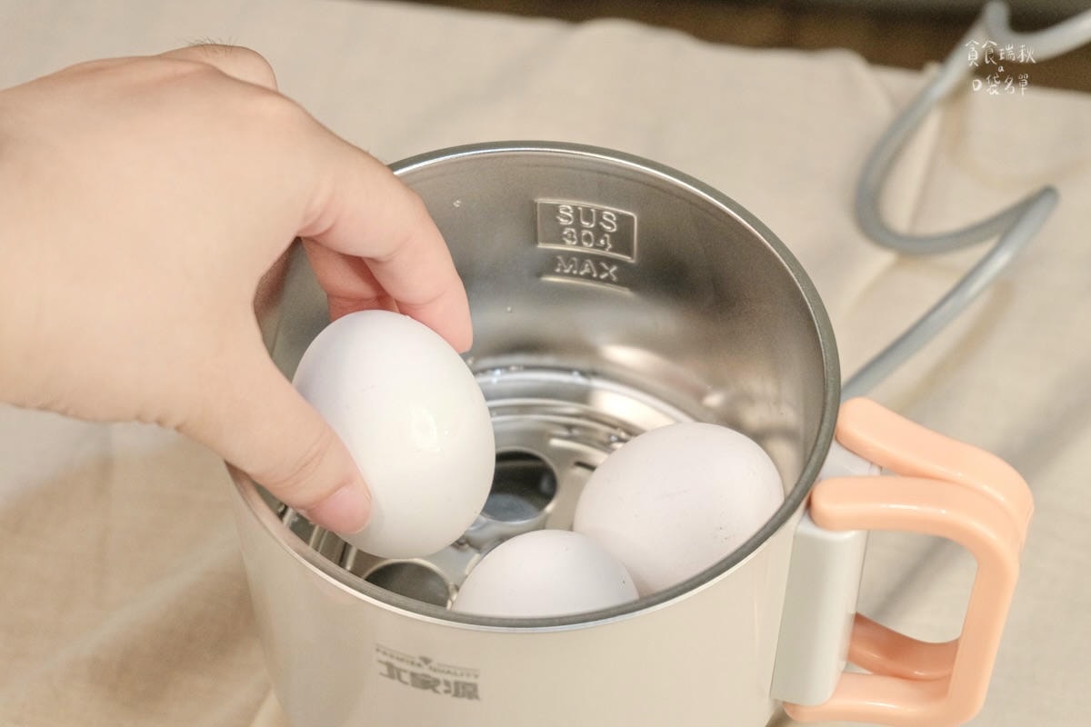 在功能上看似簡單的小鍋,實際操作起來卻相當貼心~先試試最基本的蒸雞蛋,只要加水、放上蒸盤,按下模式就能自動控制時間與加熱溫度