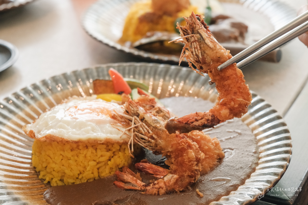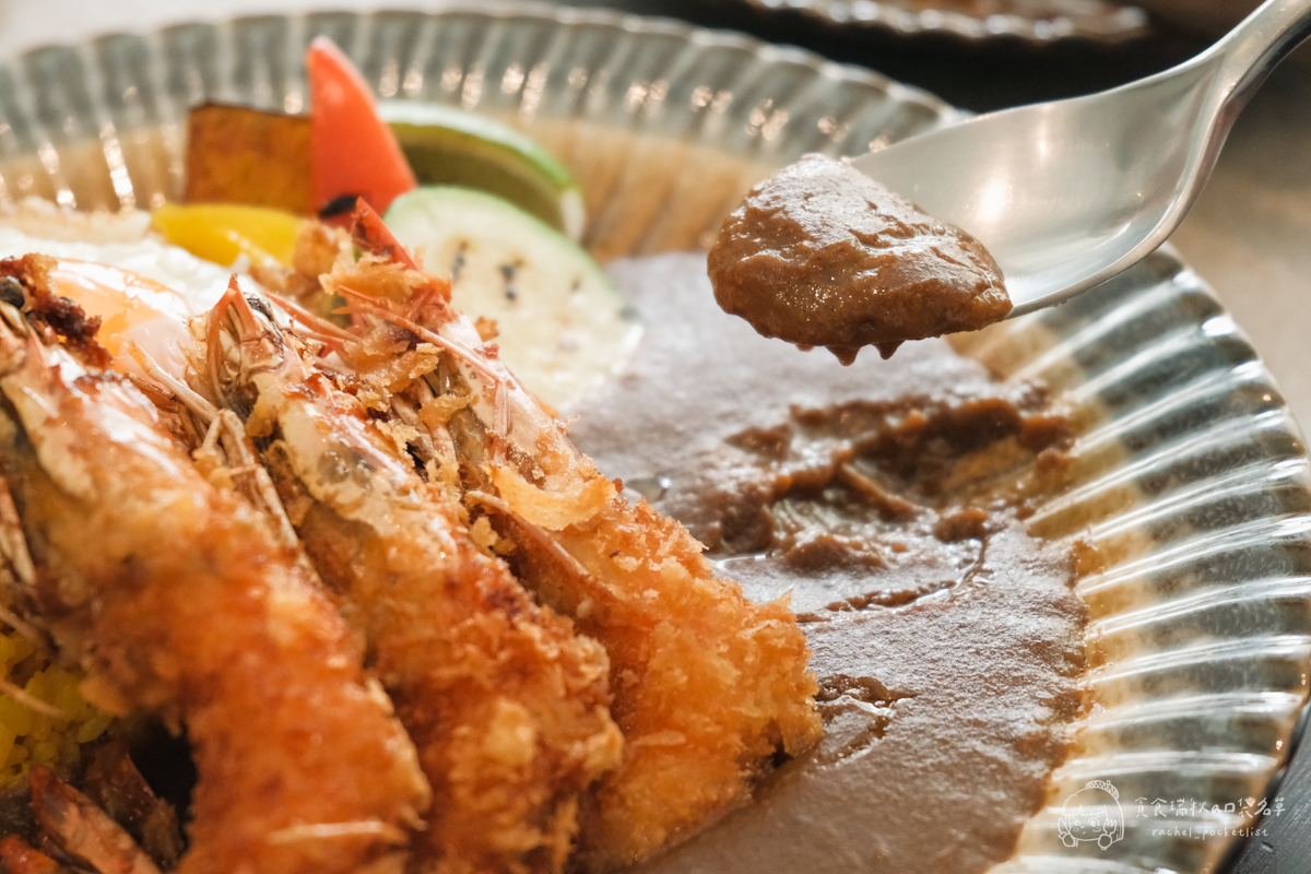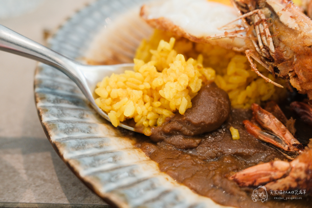 蝦味控必點!甚至只有限量十份!使用三倍蝦殼精華熬煮咖哩加上蝦油點綴,香氣濃郁到爆炸,一口下去滿滿海味衝擊,令人上癮!炸過的三隻大蝦依舊保有彈牙口感~