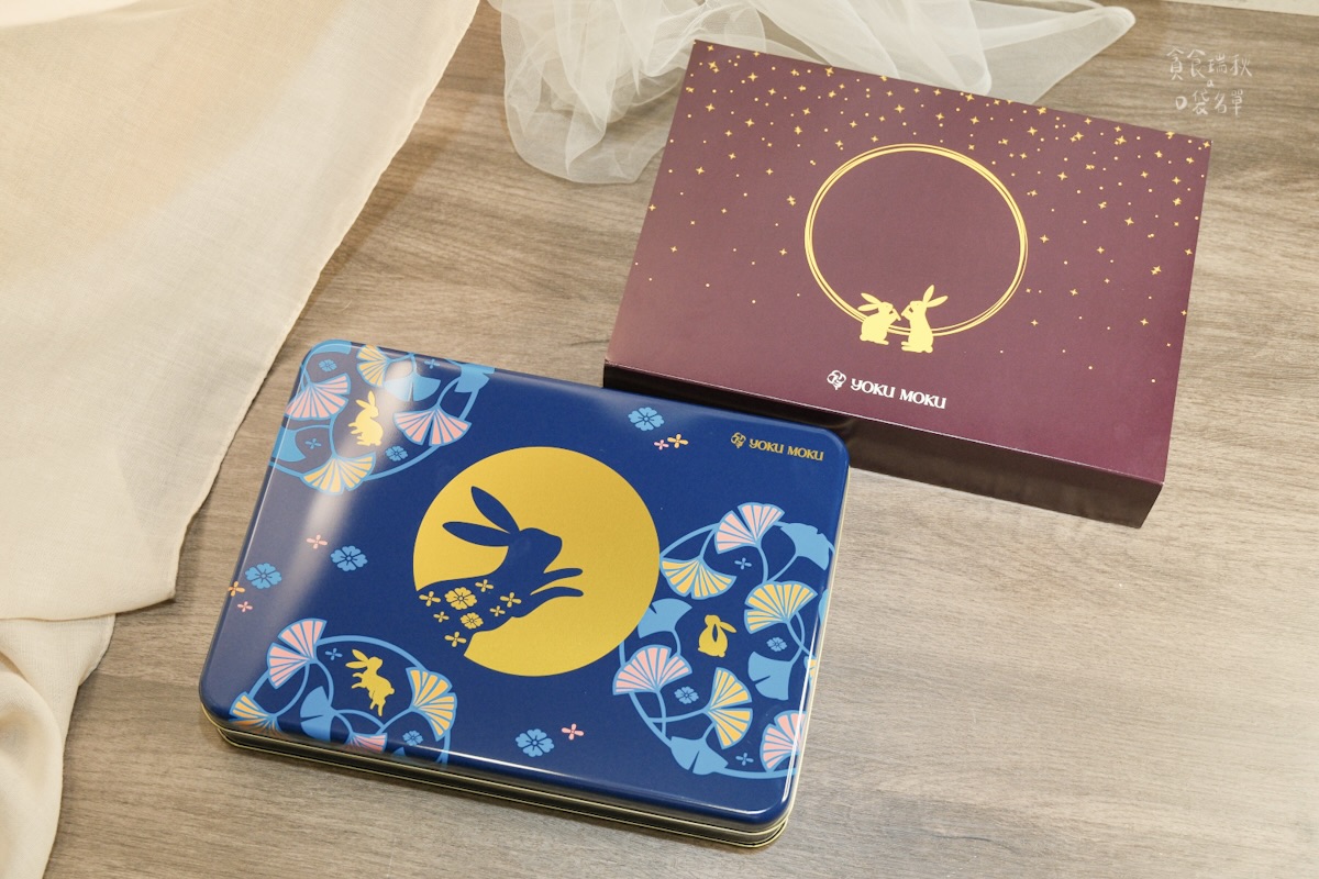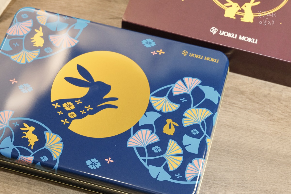 這次中秋禮盒這款海外限定,是日本買不到、台灣門市買得到的限定款!禮盒是鐵盒設計,用寶藍色與金色相映,展現精緻質感,還有月兔意象圖,很有中秋氛圍!