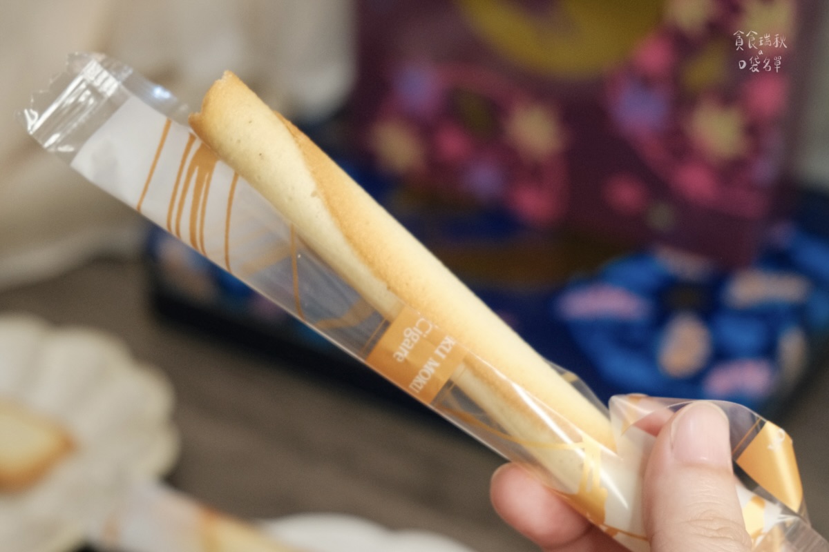 這也是首次有紅茶雪茄蛋捲加入季節禮盒內!紅茶雪茄蛋捲可以吃出濃濃茶香,折半後可以看到層層厚實的蛋捲!