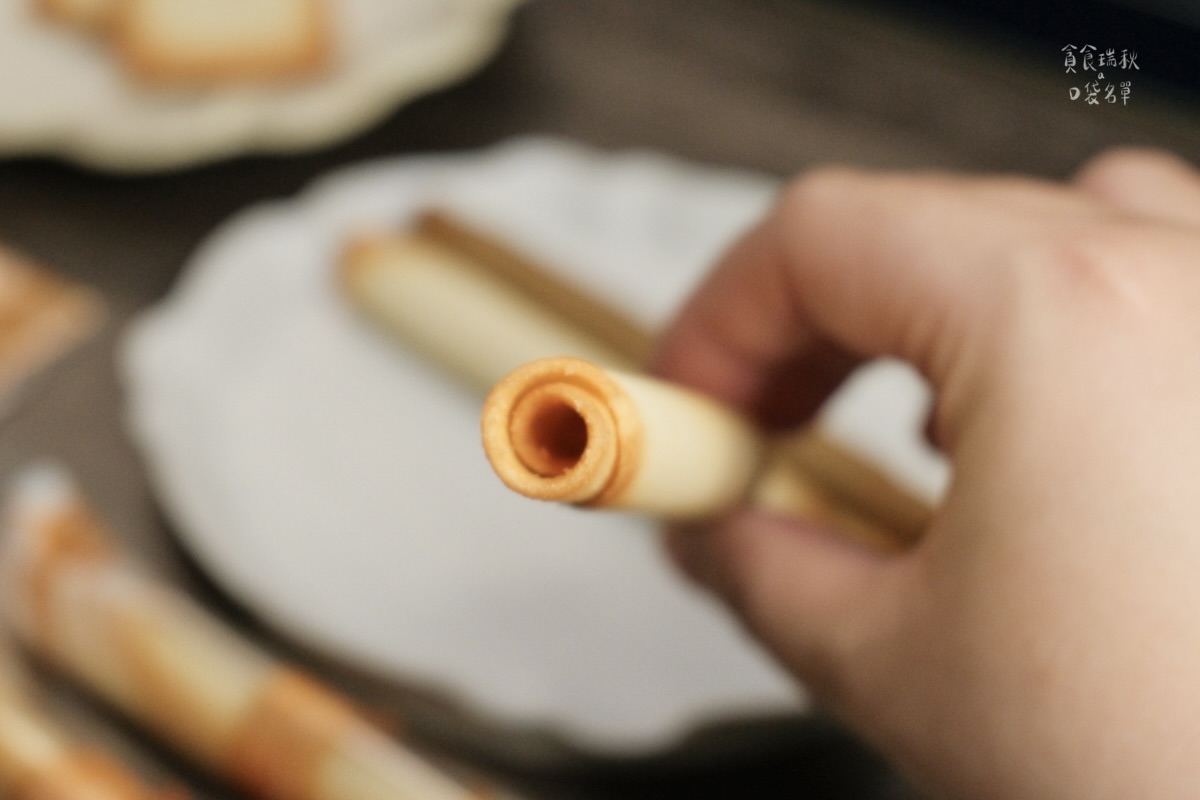 原味雪茄蛋捲也是可以看到剖面層層酥脆~我也好喜歡原味較深色的邊緣,餅乾烤出來自然的漸層色~超誘人!
